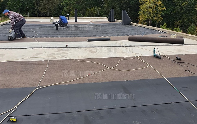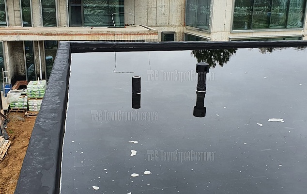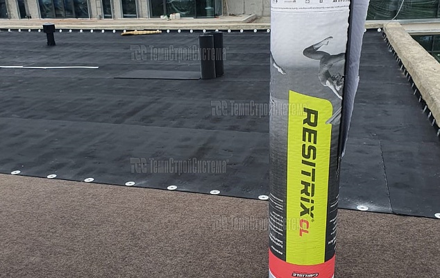 Устройство гидроизоляции плоской кровли мембраной Резитрикс Классик (Resitrix Classic) и Резитрикс СК-В (Resitrix SK-W) , с проведением гидротеста.